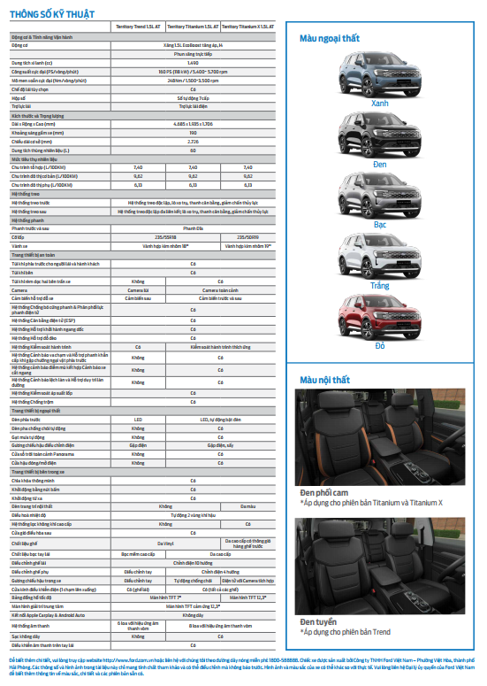 Giá xe Ford Territory 2025 cho từng phiên bản cụ thể như sau:
